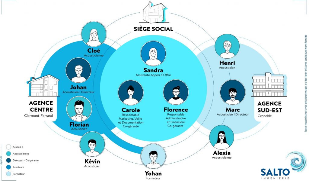 Le bureau d’études acoustiques Salto Ingénierie opère une transformation heureuse dans son organisation. Devenue coopérative en 2021, Salto Ingénierie poursuit son évolution logique et désigne, en 2022, ses nouvelles co-gérantes Carole Roffet et Florence Auclair, ainsi que ses directeurs d’agence Johan Jacquemoud à Clermont-Ferrand et Marc Duhil à Grenoble, au sein d’une équipe soudée et engagée.